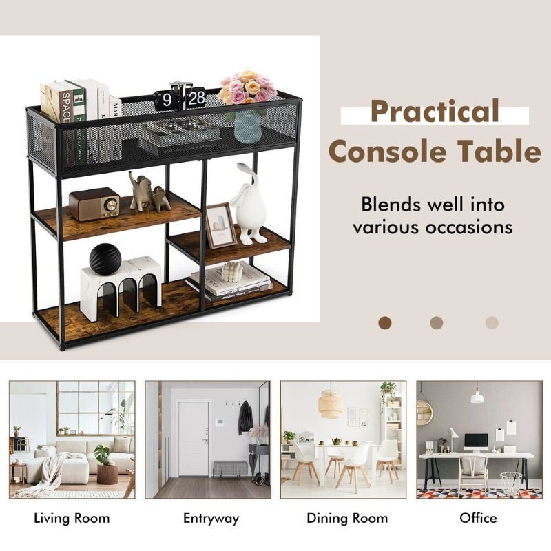 This narrow sofa table is a perfect choice to add a touch of high-end farmhouse charm to your home.