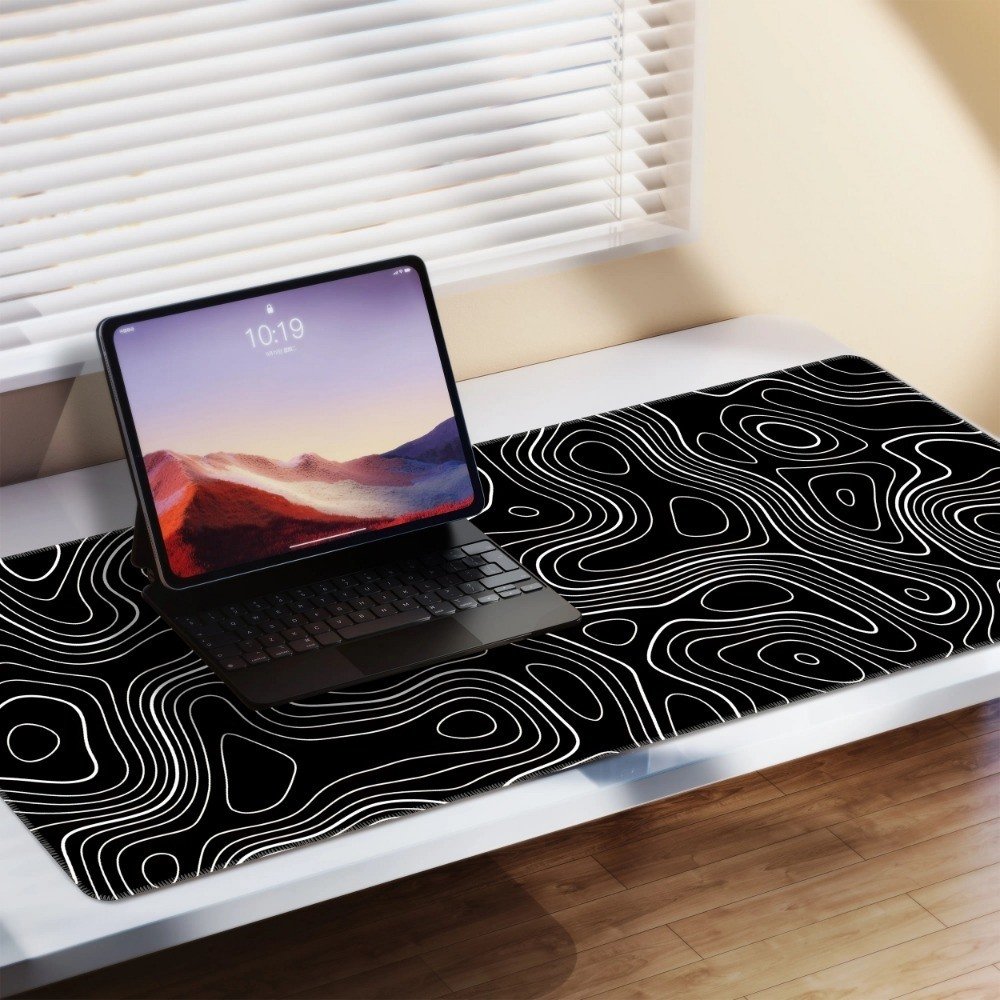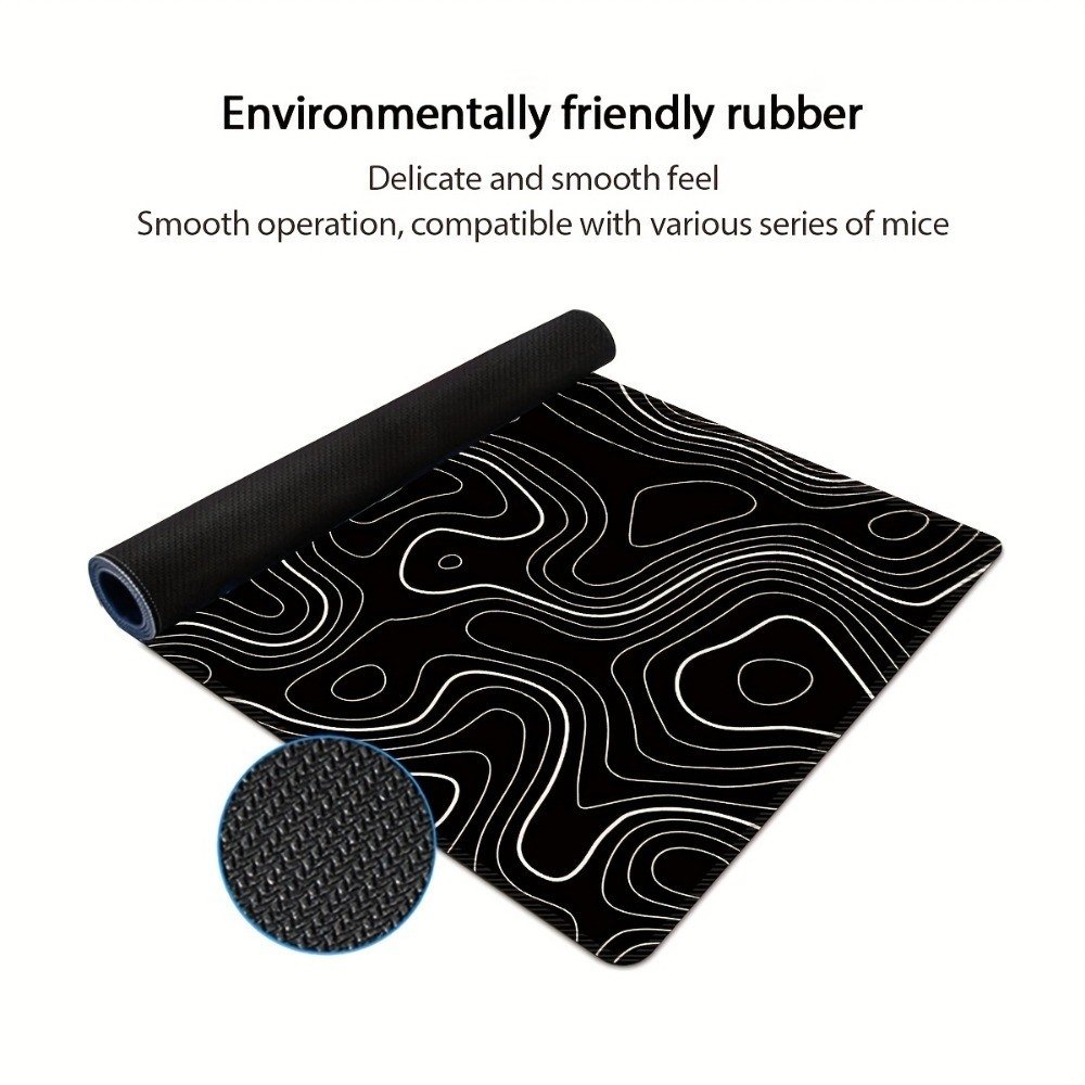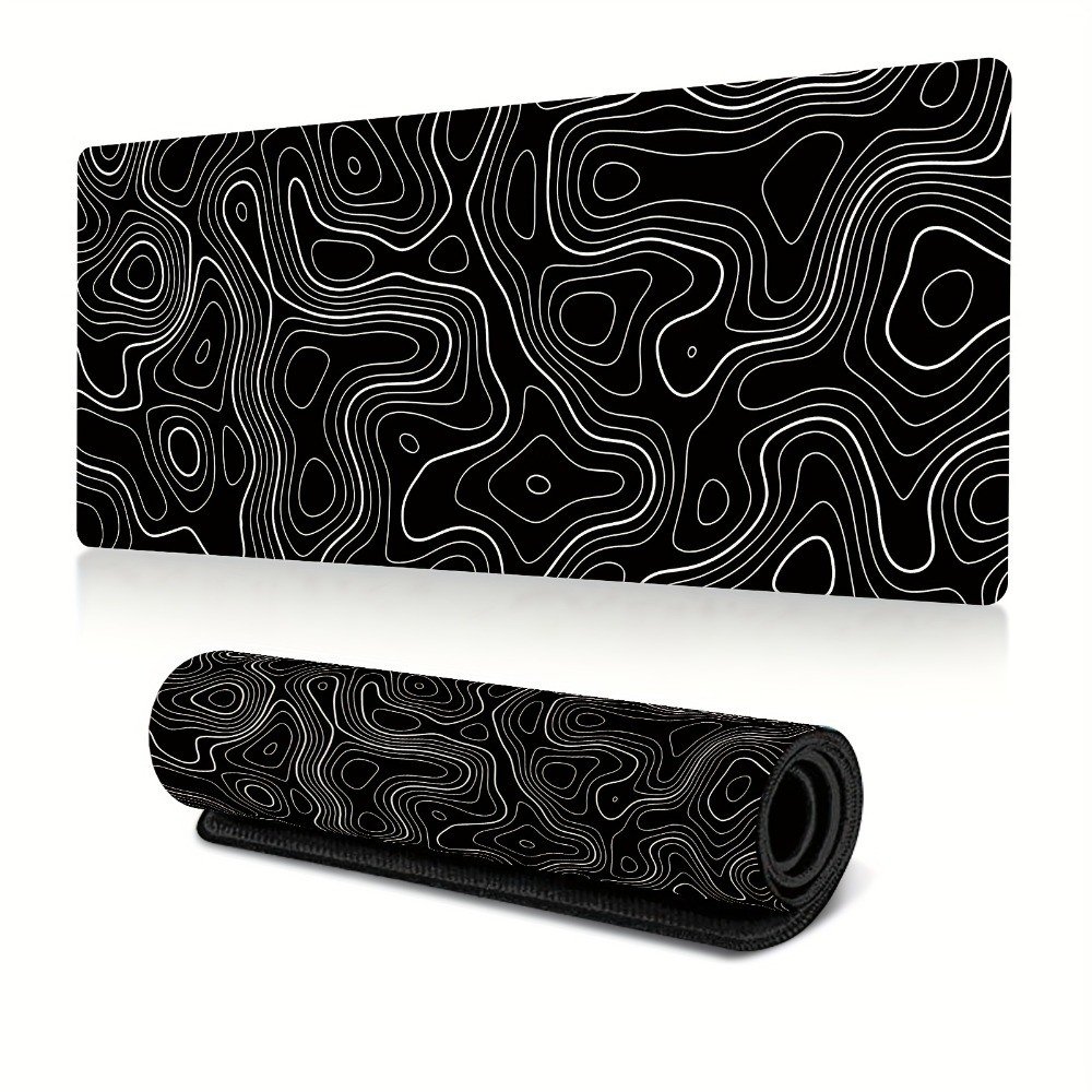 Home > Large Gaming Mouse Pad Black Topographic Contour Mouse Pad with Stitched Edges & Nonslip Rubber Base Extended XL Long Mousepad Big Desk Mat for Compan
