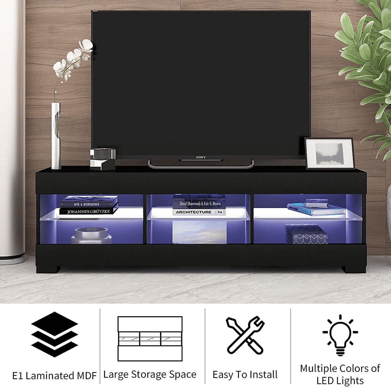 1.LED TV Stand for Up to 60 Inch TV,Modern High Gloss Entertainment Center with Open Shelf,TV Stand Console Table for Living Room,Bedroom