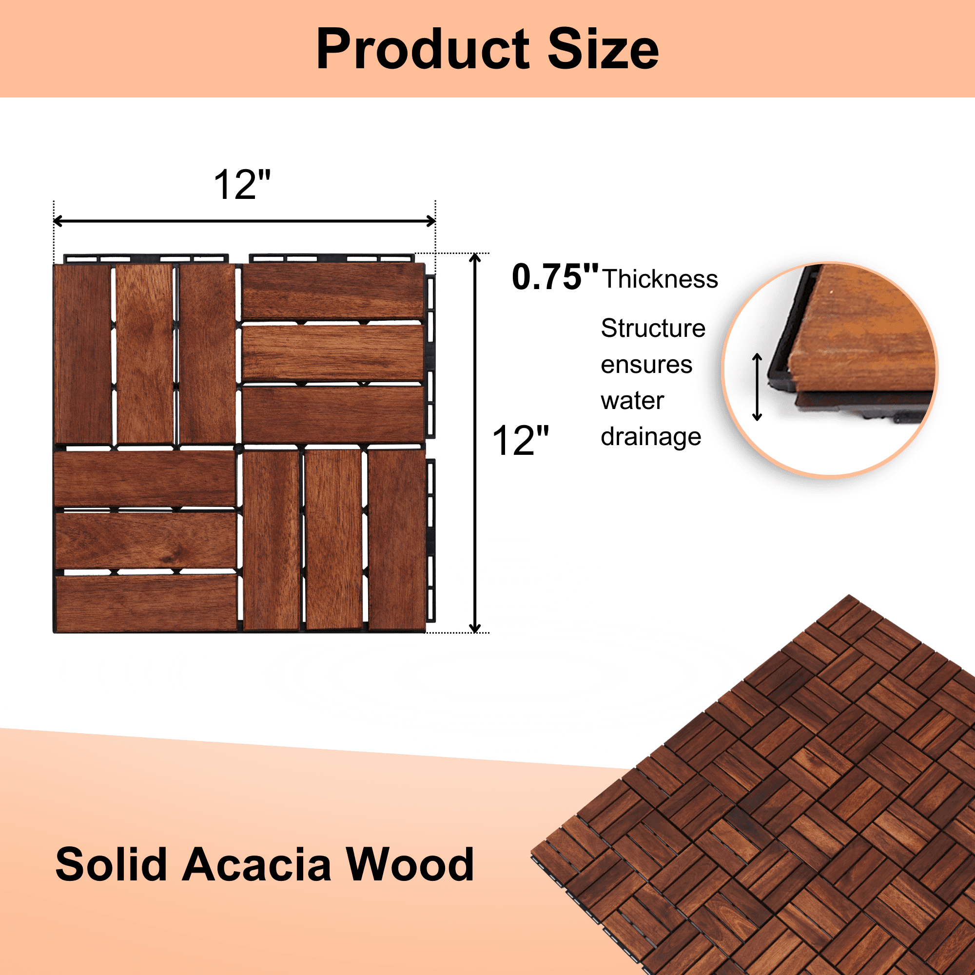 Home > Acacia Wood Interlocking Deck Tiles Checker Pattern, 20 PCS 12" x 12" Square Acacia Hardwood Outdoor Flooring for Patio, Bancony, Pool Side,...